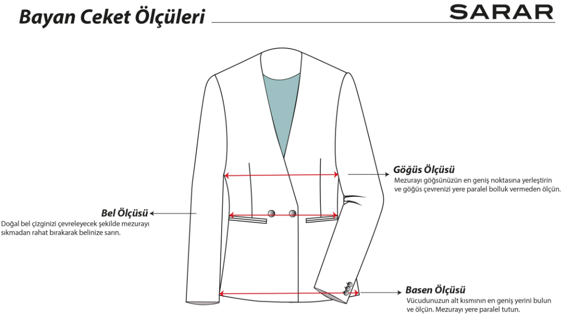 | BEDEN | 44 | 46 | 48 | 50 | 52 | 54 | 56 | 58 | 60 | |